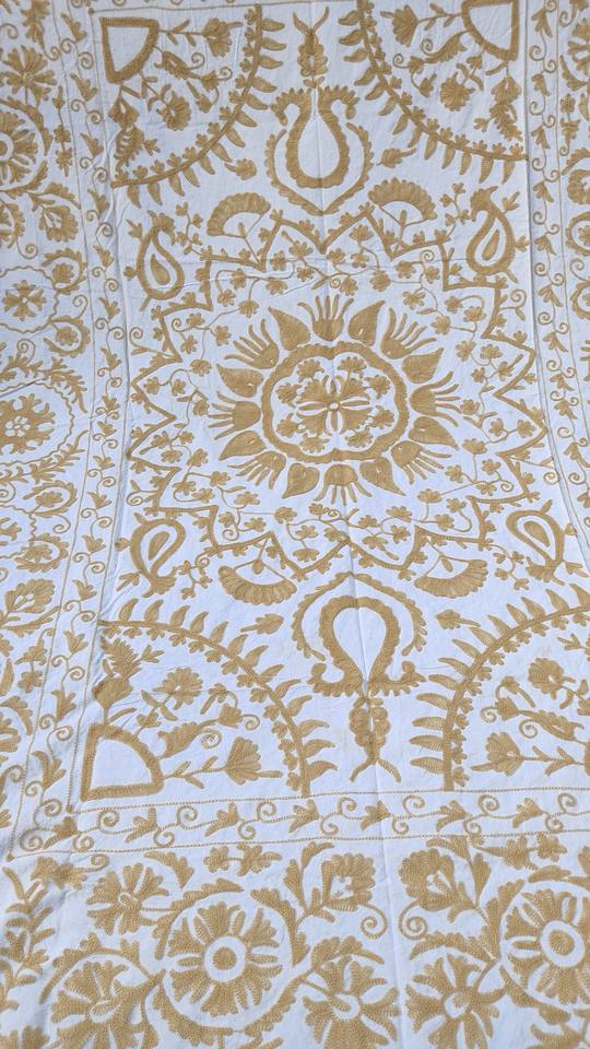 Keywords:Traditional Uzbek Suzani Embroidered Bed Sheet