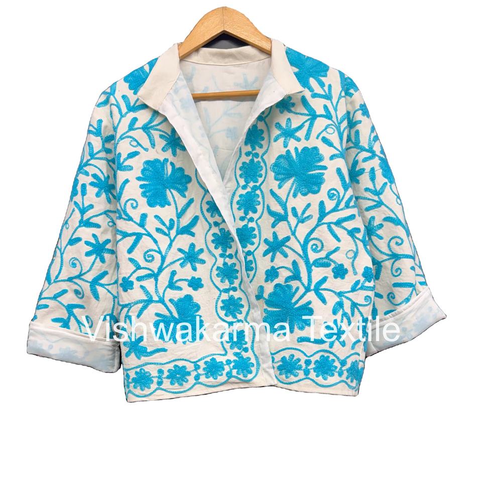 Suzani Embroidered Boho Short Eco-Friendly Cotton Women's Jacket Stand Collar Winter Festival Wedding Wear