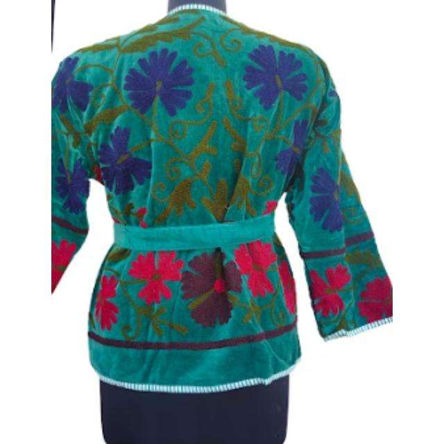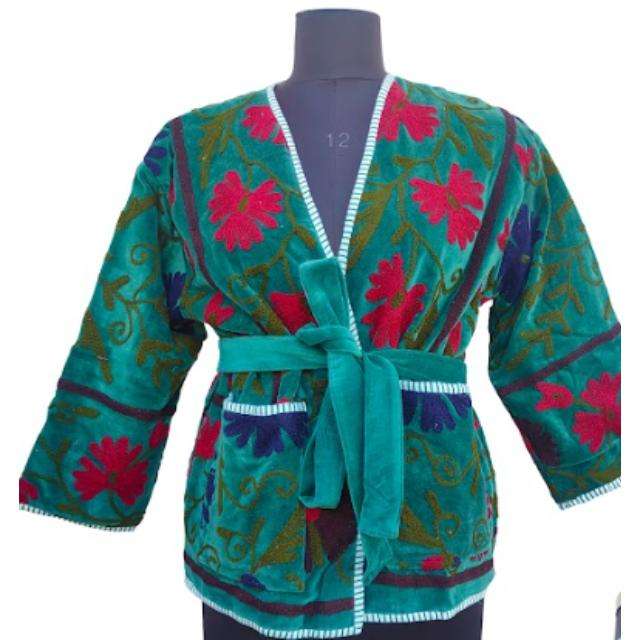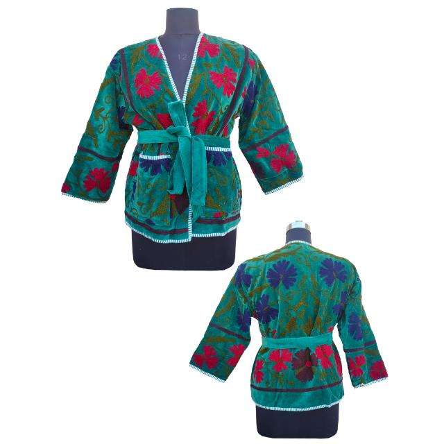 Suzani Embroidery Kimono Jacket Indian New Short Coat Free Size Winter Warmed Kimono