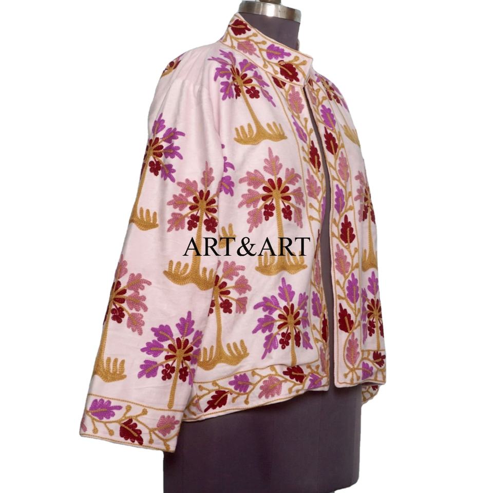 Suzani Velvet Handmade Embroidery Eco-Friendly Quilted Women's Regular Coat Jacket with Vintage Style Colorful Design Cotton