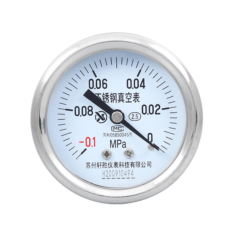 Suzhou XuanSheng Stainless Steel Vacuum Gauge Y60BF-Z 60mm -0.1MPa Thread Connection Pressure Gauge