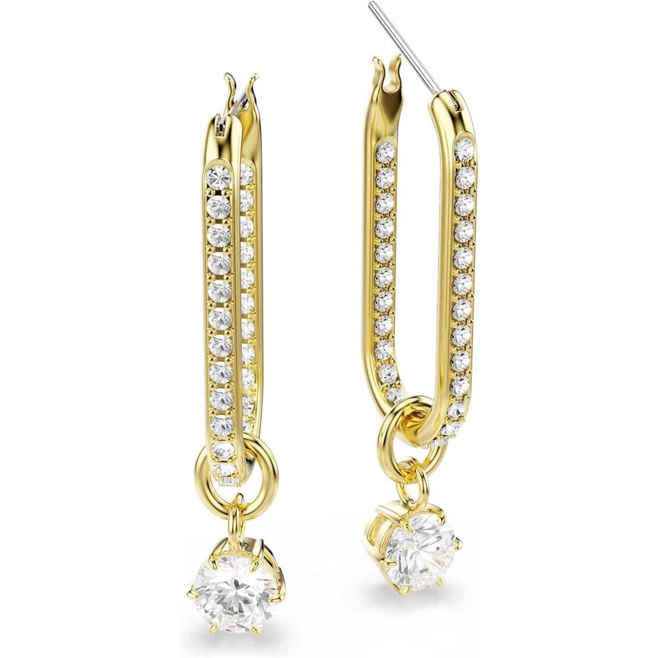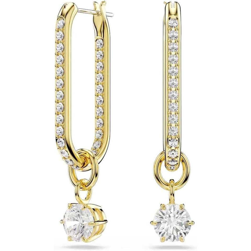 Swarovski Constella Round Cut White Crystal Drop Earrings with Gold-Tone Finish