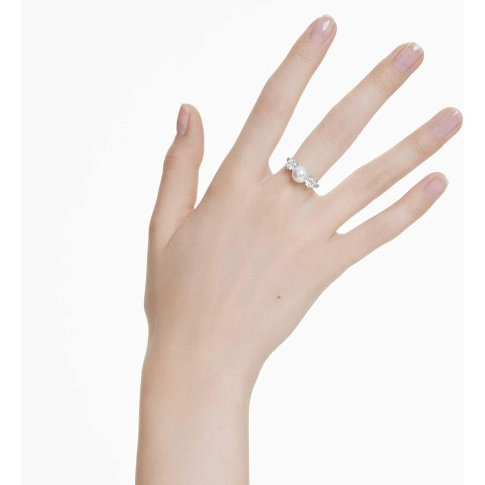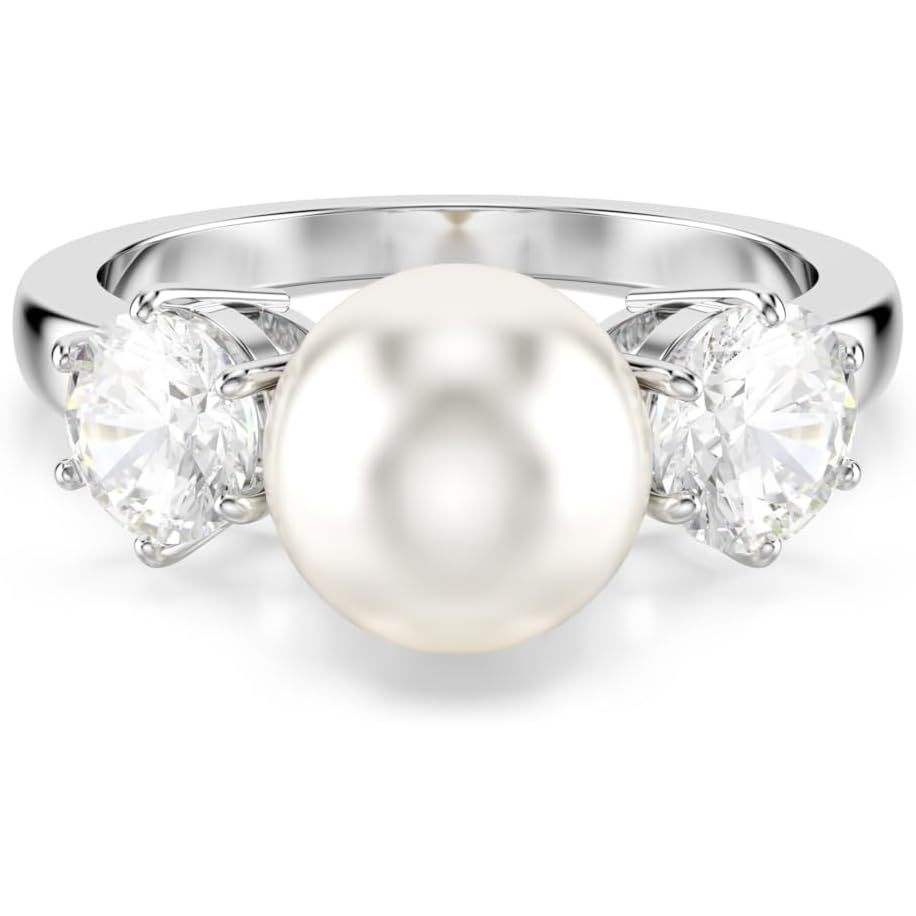Swarovski Crystal Pearl Round Cut Clear Matrix Ring with Rhodium Finish Fashion Accessories