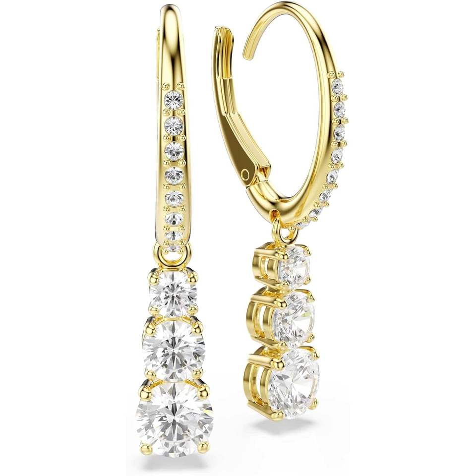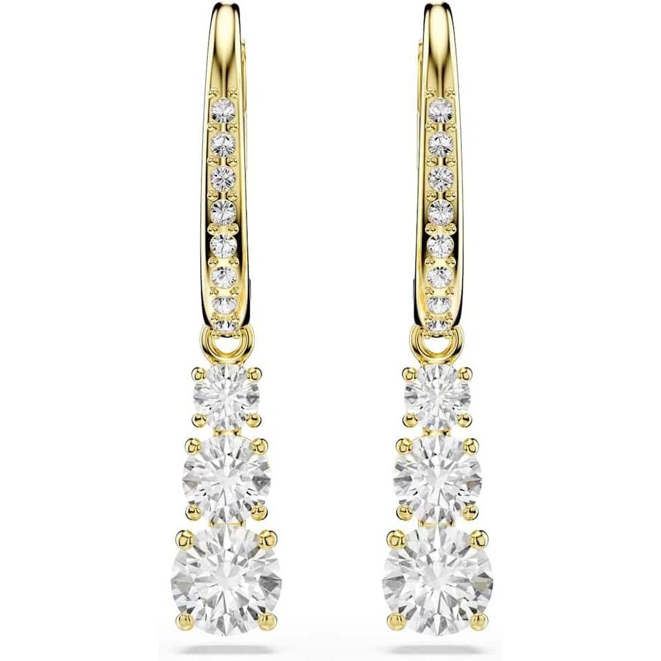 Swarovski Stilla Attract Round Cut White Crystal Hoop Earrings with Gold-Tone Finish Pav Setting 0.15 Carat