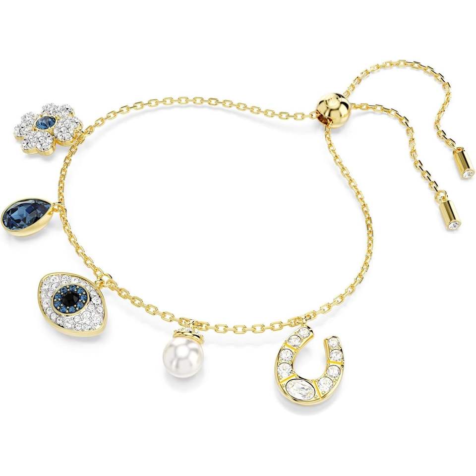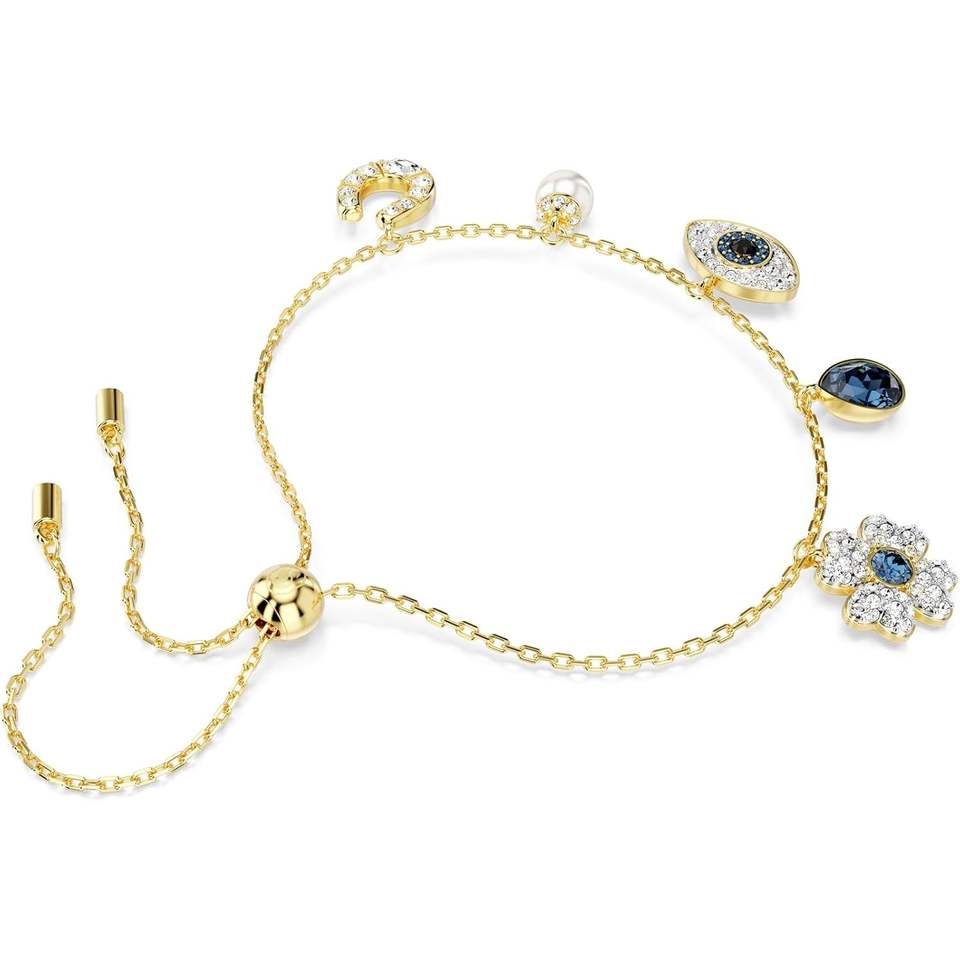 Swarovski Symbolica Unisex Adult Bracelet with Crystal Clover Evil Eye & Horseshoe Design Blue Gold-Tone Finish 0.05 Carat