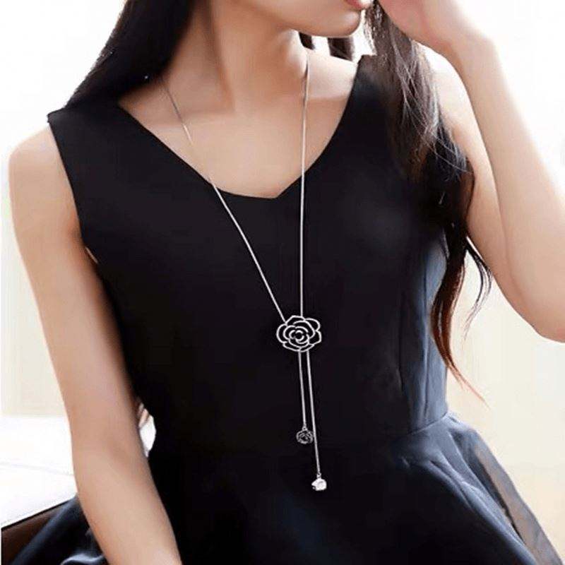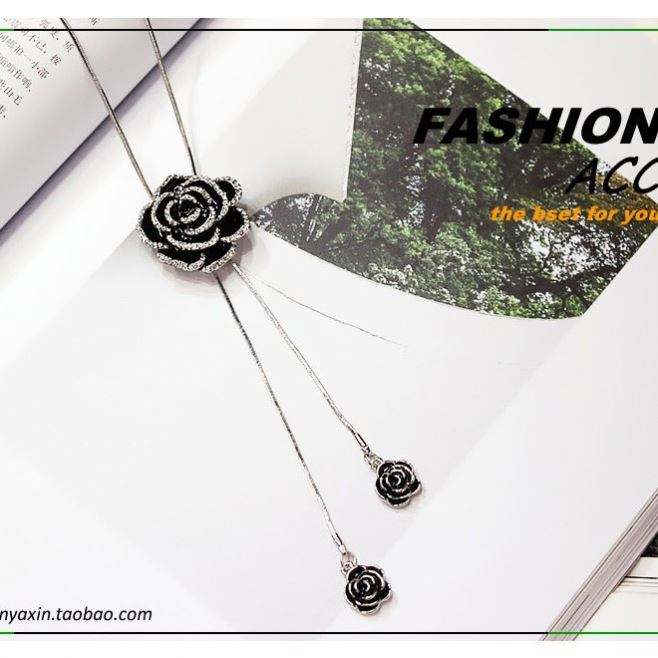 Sweater Chain Long Necklace Women's Retro Oil-Spot Glaze Flowers Pendant Jewelry Fashion Accessories