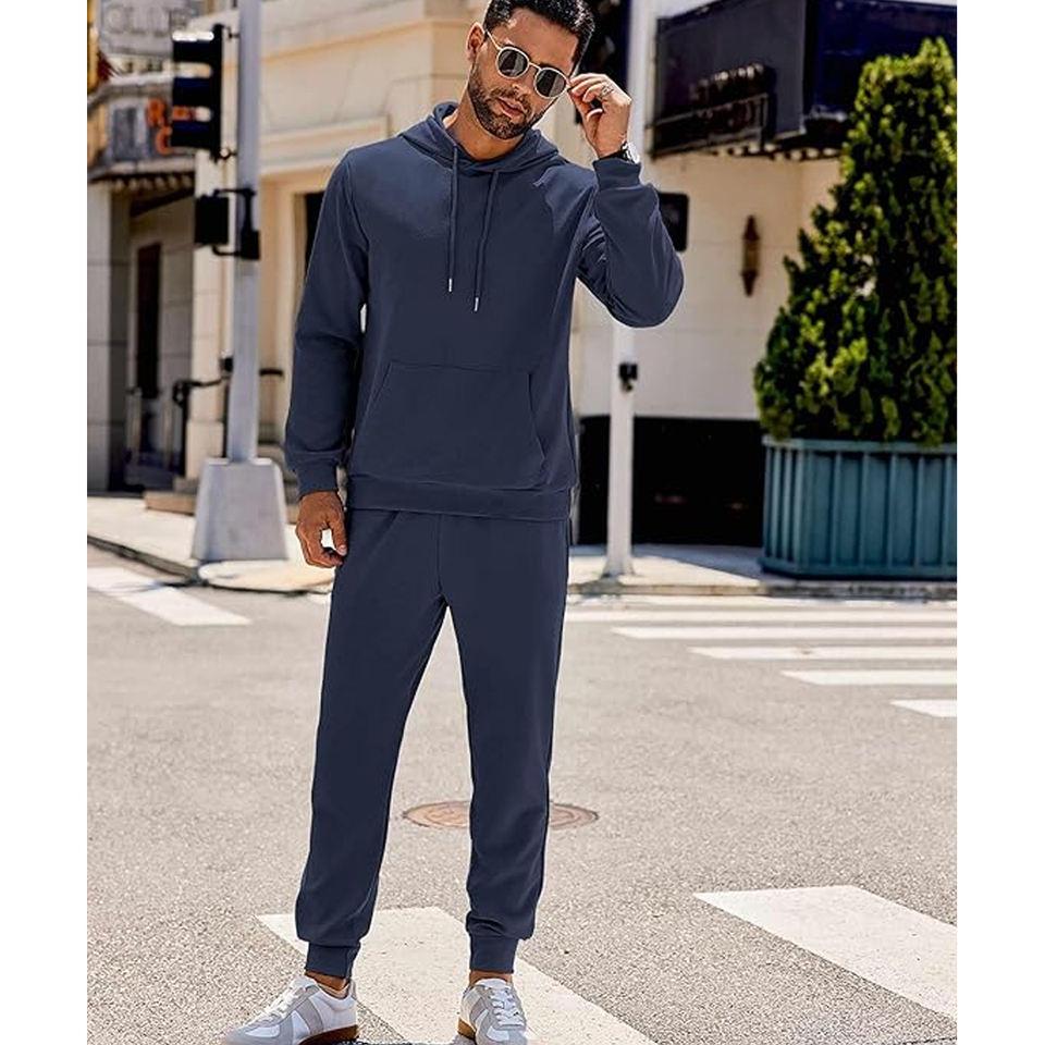 Sweatpants with Hoodie for Men 2 Piece Set Casual Long Sleeve Solid Color Sport Workout Jogging Fashion Outfits Suits