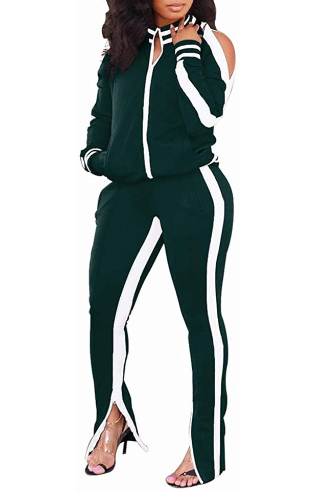 Product name:Women Tracksuits Striped Zipper Jacket + Long Pants Sweatsuits