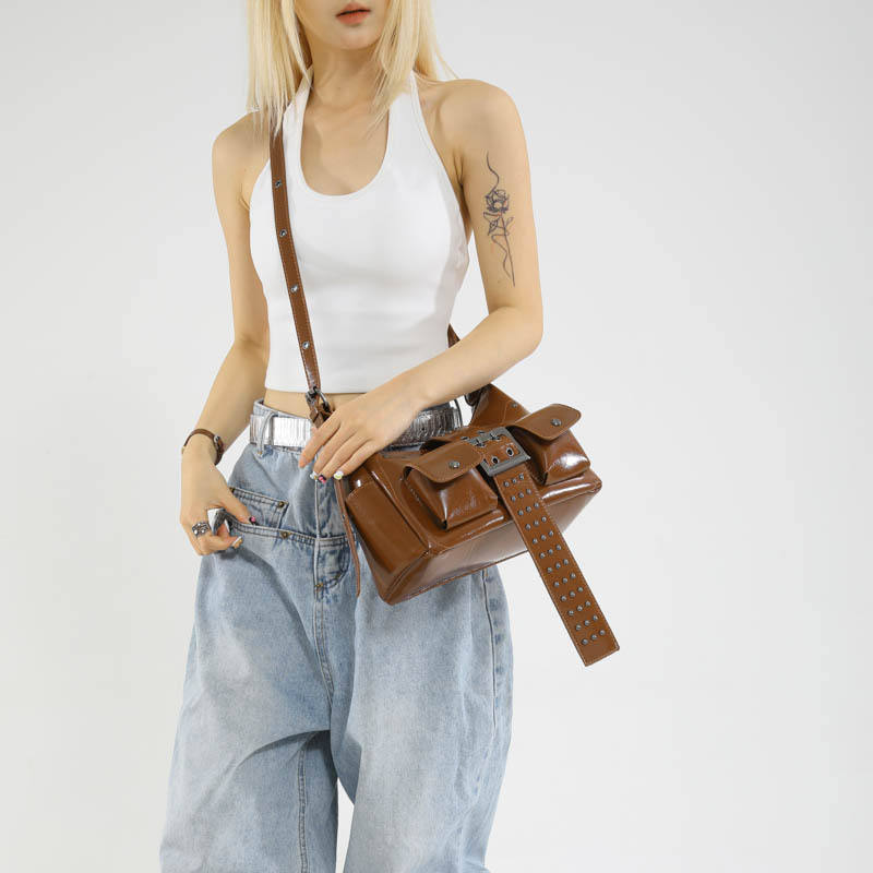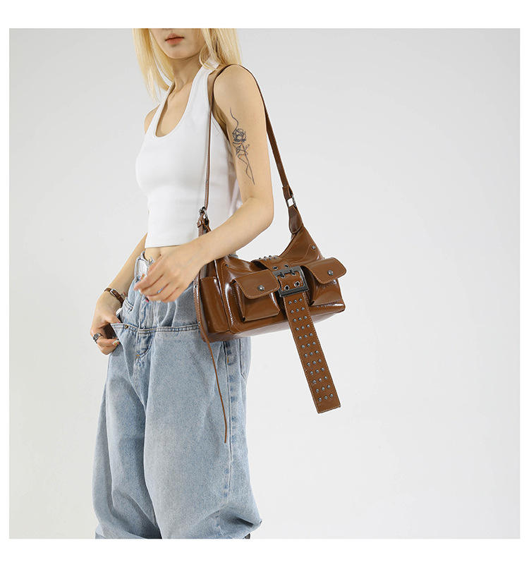 Sweet Cool Hot Girl Fashion design Riveted Underarm Bag for Women Trendy Adjustable One Shoulder Bags