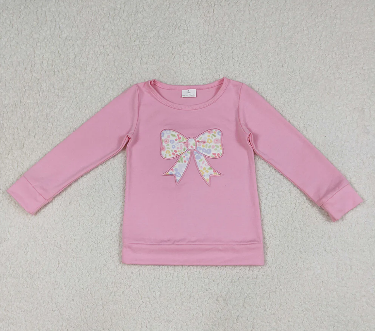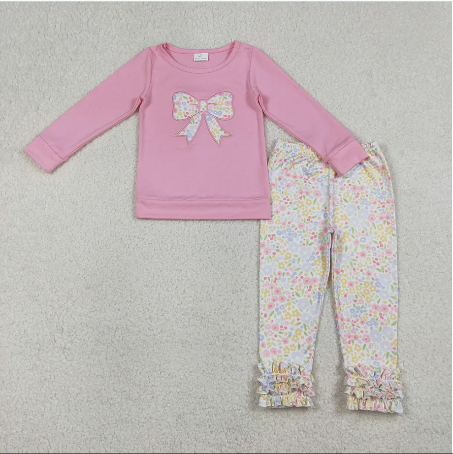 Sweet Girls GLP3242 Bow Embroidery Pink Top Colorful Flowers Pants Girls Spring Clothes Set