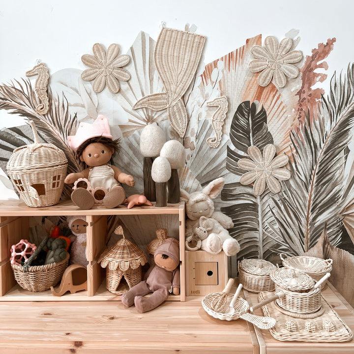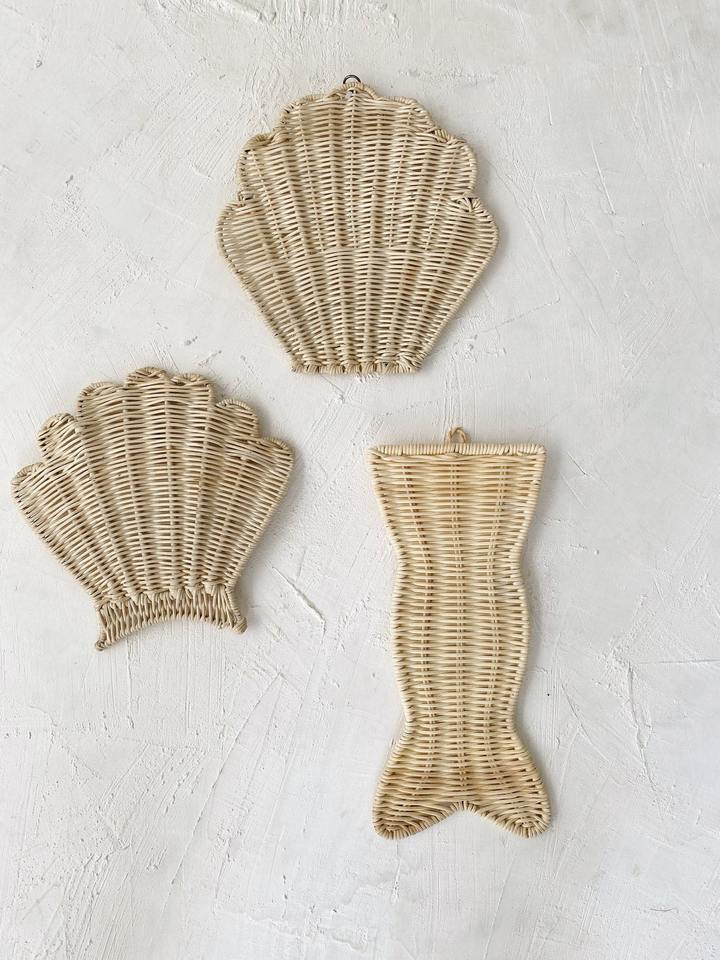 Sweet Natural Color Handwoven Rattan Mermaid Tail Wall Decor Large and Small Size for Kid and Nursery Room