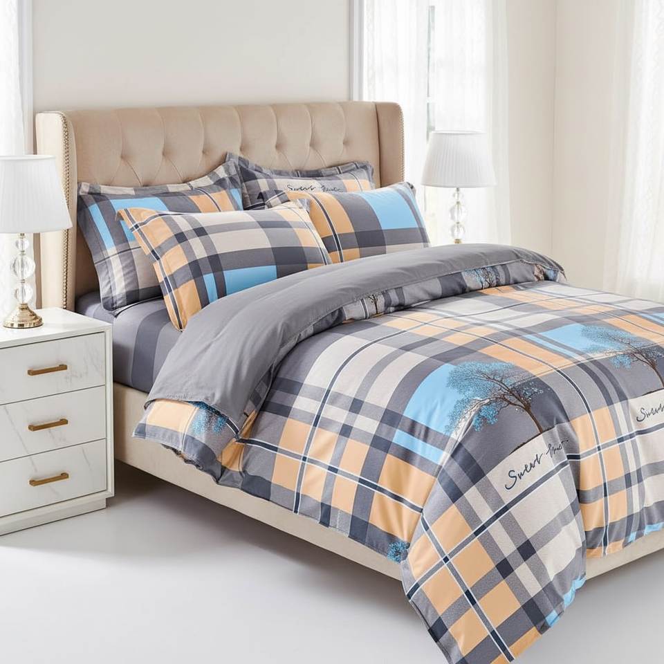 Sweet Pine Plaid Comforter Set 100% Cotton Full Queen Size Washable Home Bedding Duvet Cover With Matching Pillowcases