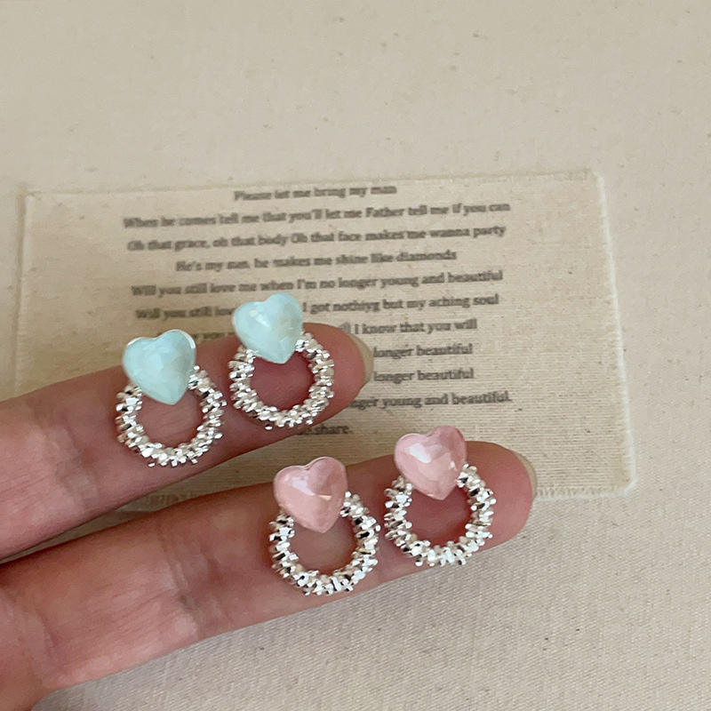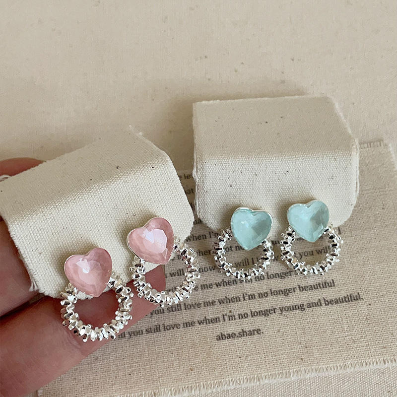 Sweet Pink Crystal Love Earrings For Women With High End Sense Light Luxury Fashionable And All Match Earrings