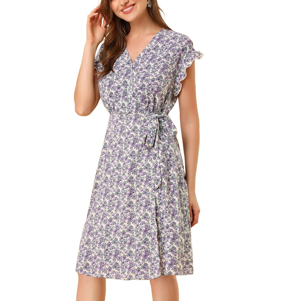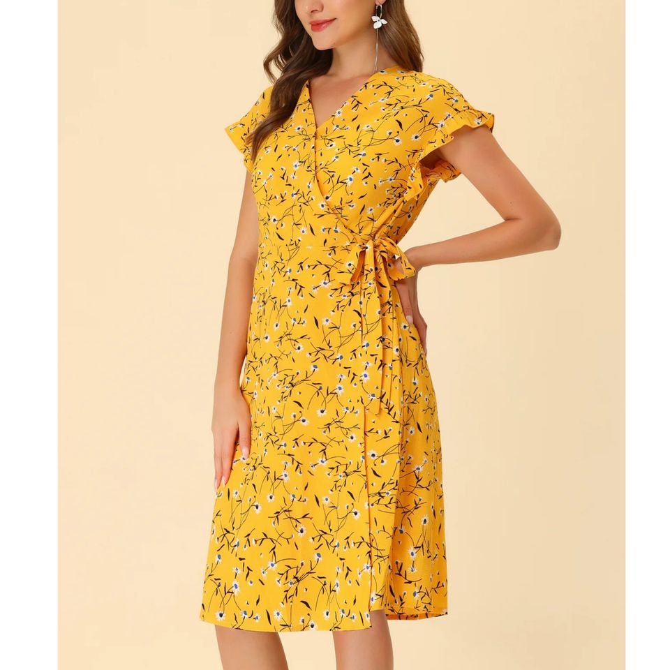 Sweet Style Women's Autumn Casual Midi Dress 100% Polyester V-Neck Short Sleeve Solid Wrap Waist Belt Fit Flare Daily Parties