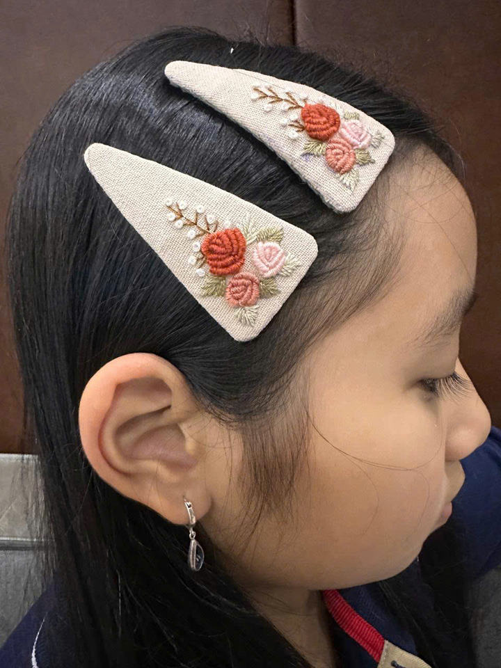 Sweet Style Hand Girl and Women Embroidered Hair Clip Flower pink and Green Color Christmas Gift Best Selling