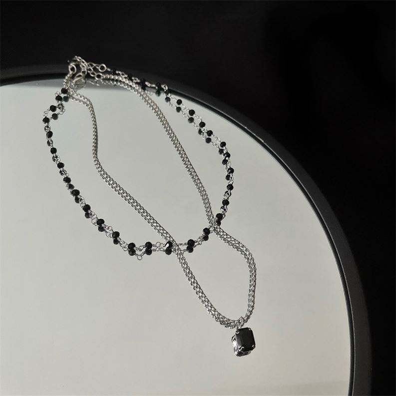 Sweet and Cool Black Gemstone Double-layered Necklace for Women, High-end Clavicle Chain, Hot Girl Necklace, Trendy Accessories