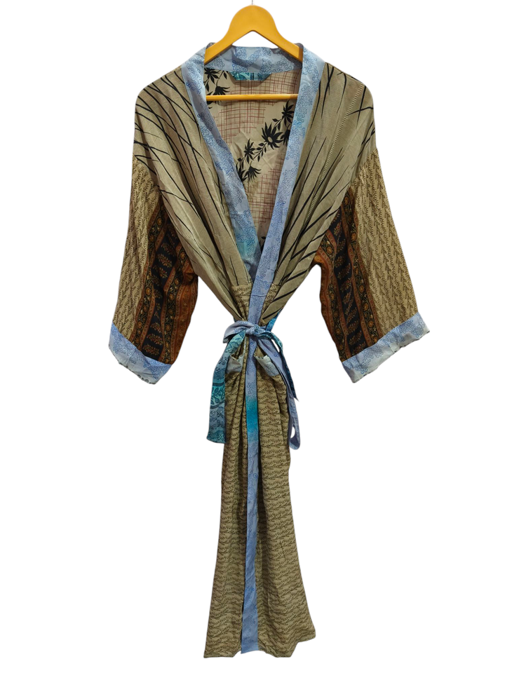 Swim Wear Soft Silk Bathrobe Multi Color Robe Night Wear Robe Indian Vintage Recycled Silk Sari Kimono,