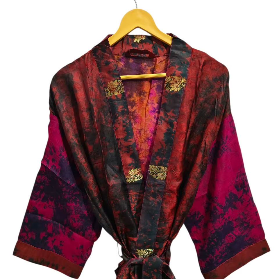 Swim Wear Soft Silk Bathrobe Multi Color Robe Night Wear Robe Indian Vintage Recycled Silk Sari Kimono,