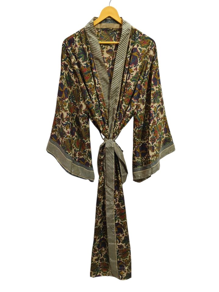 Swim Wear Soft Silk Bathrobe Multi Color Robe Night Wear Robe Indian Vintage Recycled Silk Sari Kimono Gift Robe,