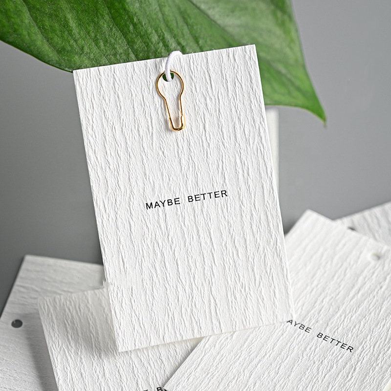 Swing Hangtags Maker Custom Silk Screen Printing Brand Logo White Textured Cardboard Recyclable Price Tags for Apparel LUOYI