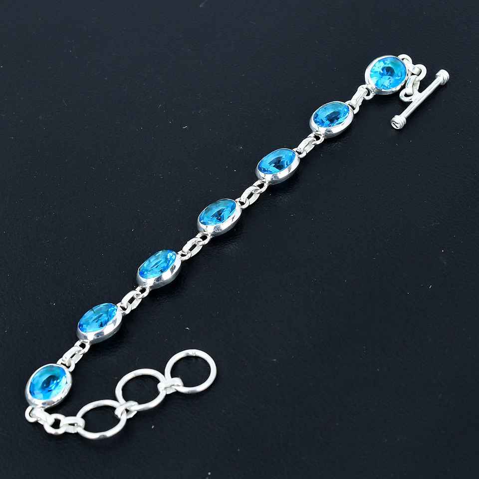 Swiss Blue Topaz Gemstone Handmade 925 Sterling Silver Bracelet Chain Bracelet, December's Topaz Birthstone Gifts For Girlfriend