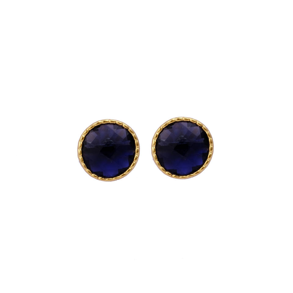 Swiss Blue Topaz Hydro Quartz Gold Plated Birthstone Stud Trendy Wholesale Supply Jewelry Collet Set Jewelry Studs Earring