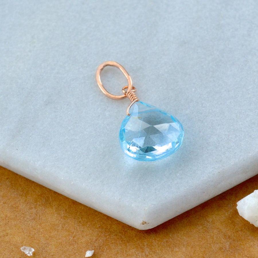 Swiss Blue Topaz Teardrop Faceted Gemstone Pendant Bright Blue Natural Stone Rose Gold Plated Handmade Charm Jewelry