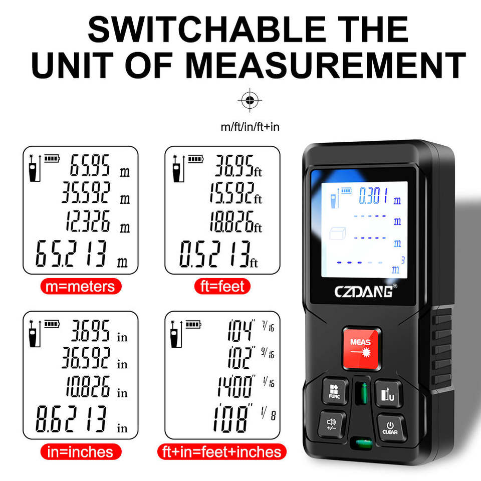 Switchable M/ft/in/ft+in Range 120 Meters/394 Feet Digital Laser Infrared Distance Meter Measure Tape with 2 Bubble Levels