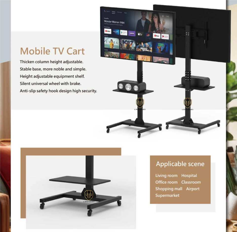 Swivel 360 Degree Aluminum TV Cart Stand 32 to 65 Inches with 220LBS Capacity for Production Line Use