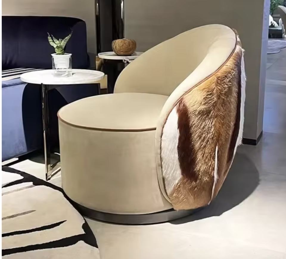 Swivel Chair Sofa For Lounge Italian Luxury Modern Minimalist Villa Style Genuine Leather Living Room Chairs
