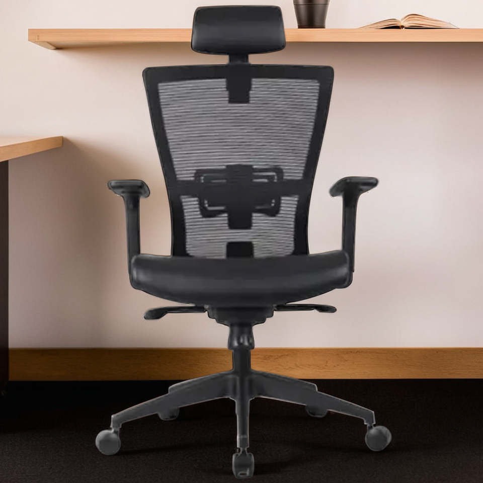 Armrest:Height adjustable armrest with sliding & twistable soft PU armpad