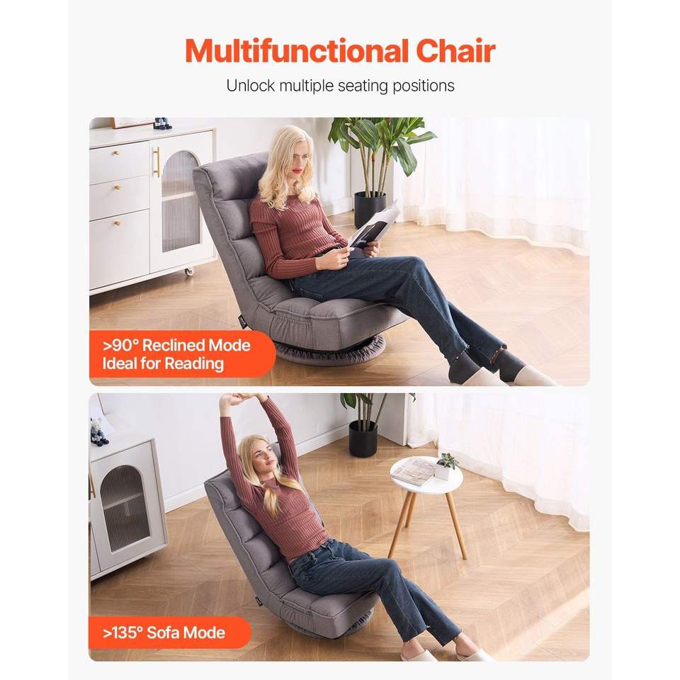 Swivel Floor Gaming Chair 360-Degree Rotating 4 Adjustable Position Folding Backrest Lumbar Support Reclining Sofa Design Games
