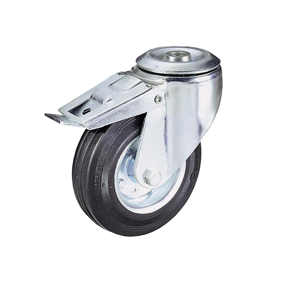 Swivel Support Caster Wheels with Through Hole Total Front Brake Pressed & Galvanized Sheet Metal Core