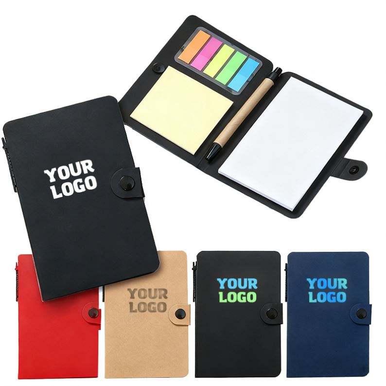 Sy864 Kraft Notebook Printed Memo Notes Pen Office Stationery Set Sticky Note Pads With Custom Cover