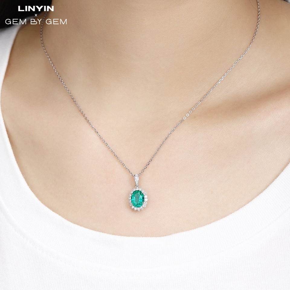 Synthetic Gemstone Jewelry 925 Sterling Silver 10mm Oval Cut Artificial Emerald Pendant Necklace for Women
