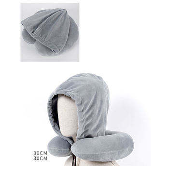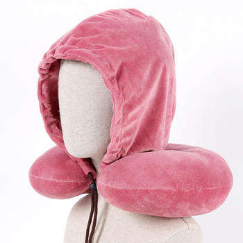 Syw Factory Custom Logo Packaging Portable High Support Memory Foam Travel With Hoodie Airplane U Shaped Neck Pillow
