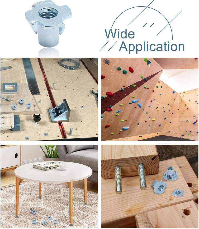 T Nut Tee Nut 4 Pronged T-Nut Tee Nut,4 Pronged T Blind Nut Stainless Steel for Wood, Rock Climbing Holds, Cabinetry