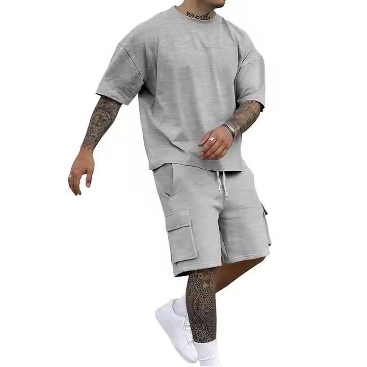 T Shirt Men's Clothing Summer Wear Set 2024 New Men Loose Short-sleeved and T-shirt Shorts Two Piece Outfits Set