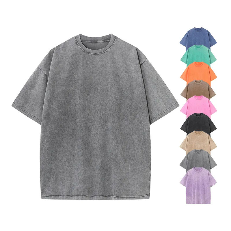 T-Shirt Supplier Custom Oversized Enzyme Wash Tshirt Cotton Vintage Distressed Acid Washed Heavy Weight Graphic T Shirt Men
