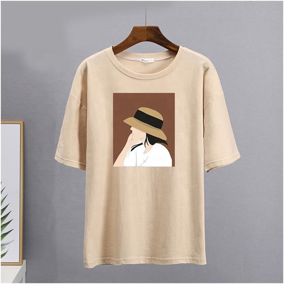 T Shirt Women New Summer Graphic Print T Shirts 100% Cotton Vintage Clothes Oversized Casual Pullover