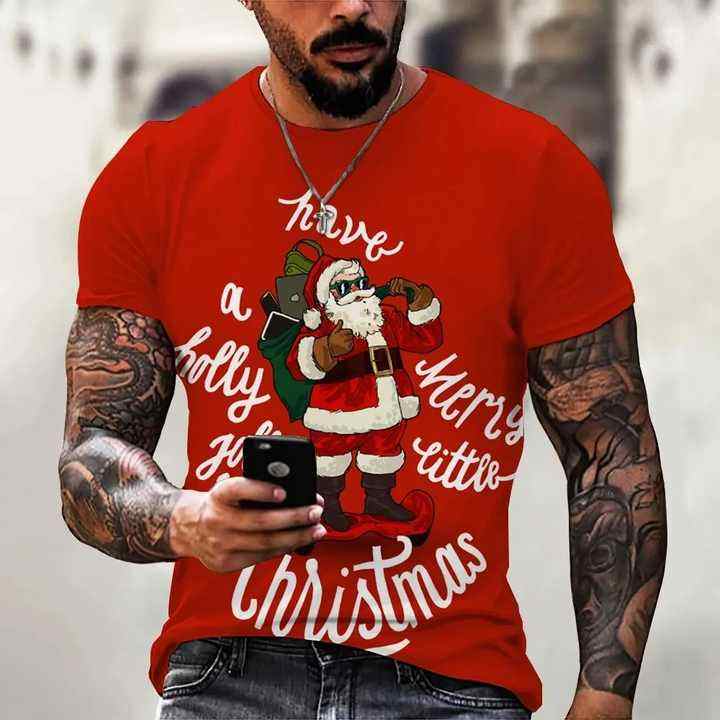 T-shirt For Men 2025 100% Cotton Men's Half Sleeve Christmas T-shirt Crew Neck Graphic Wholesale Custom Top T-shirt for Men