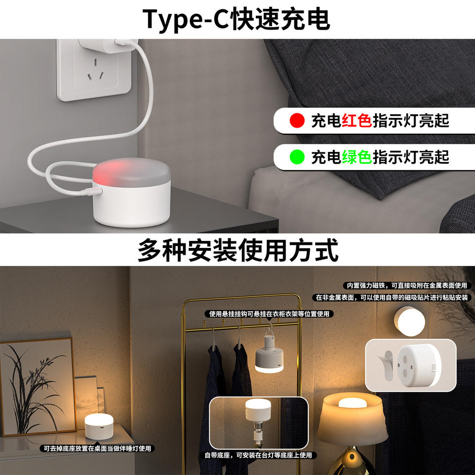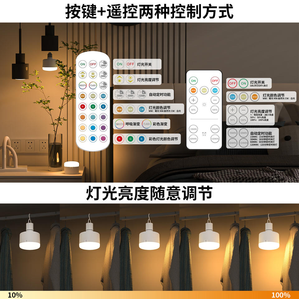 T072 Rechargeable LED Night Light E26 RGB Color Changing With Remote Control For Camping Bedside Wall Lamp