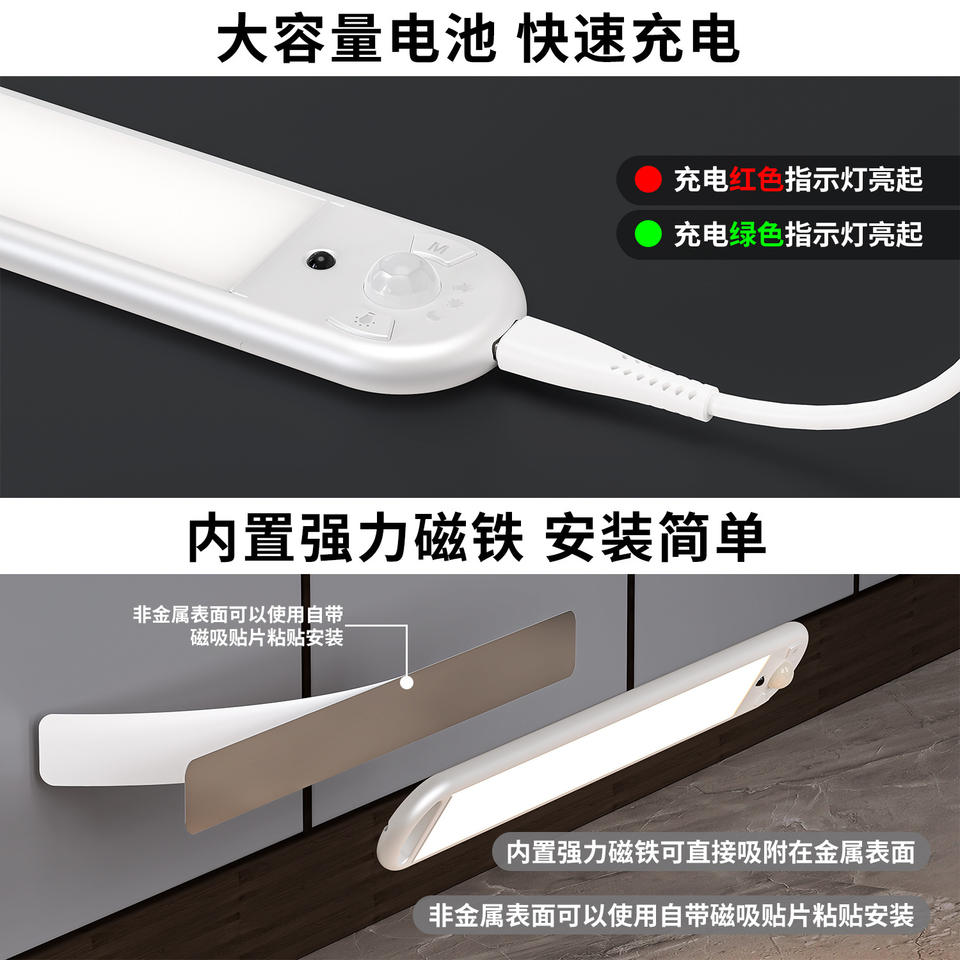 T088 LED Cabinet Light Strip 30cm Silver Sensor Control Remote Wireless Self Adhesive Smart Strip Lights