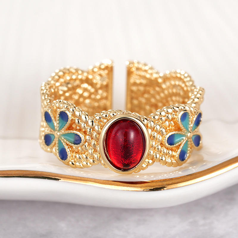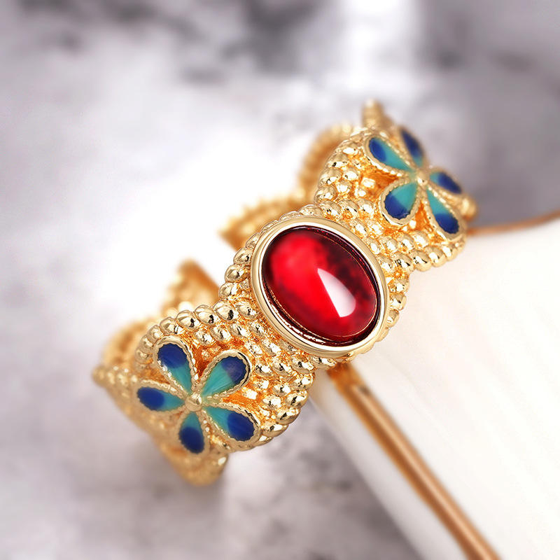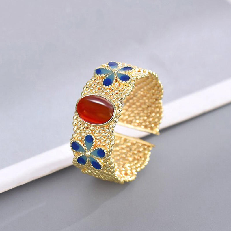 T0920 Flower Cuff Bracelet Zinc Alloy Agate Bezel Setting Women's Jewelry Fashion Bracelets