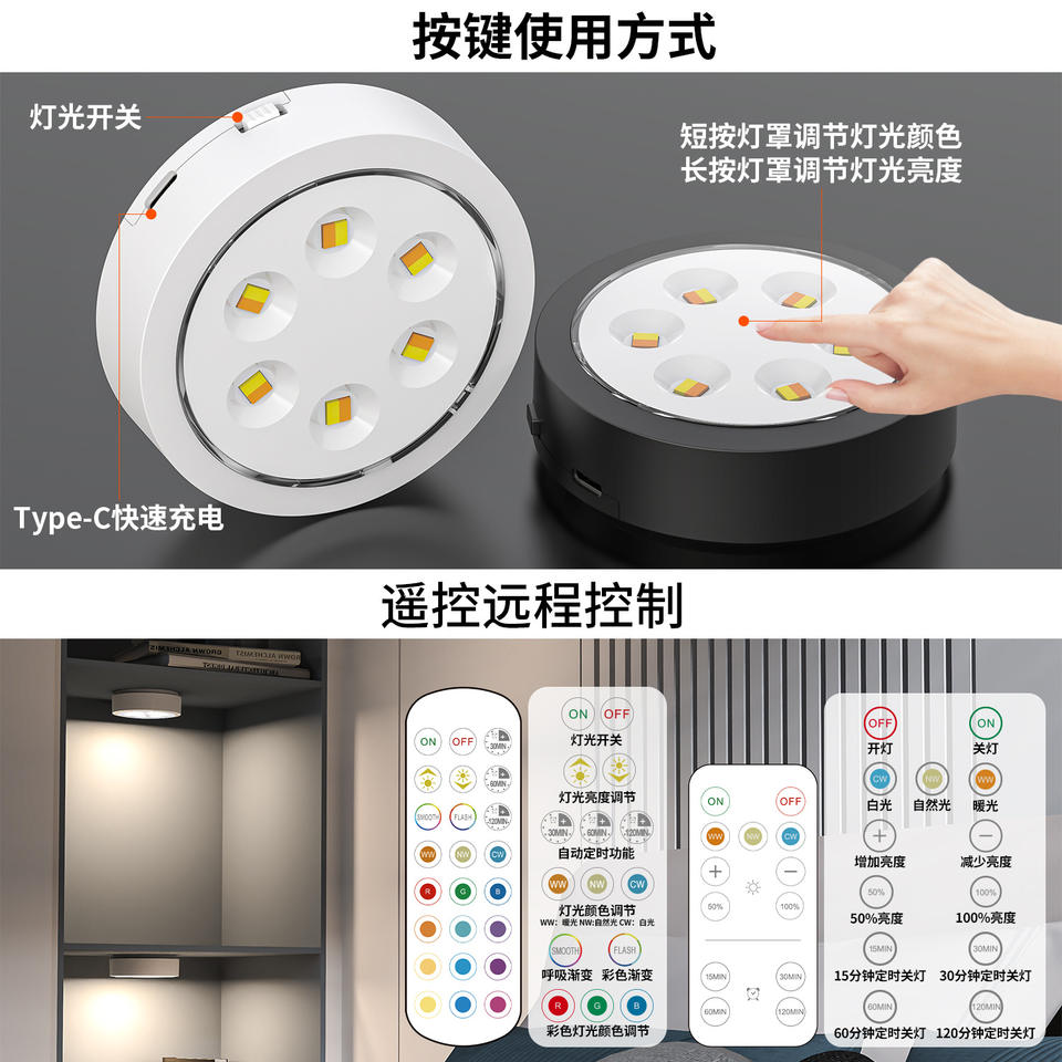 T121 Rechargeable Led Wall Lamp With Remote Control RGB Color Changing Night Light For Bedroom Living Room Ambient Lighting