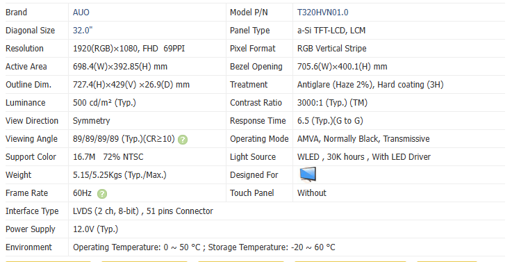 Resolution:1920(RGB)*1080 FHD 69PPI