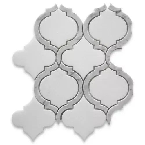 T89AXH Thassos White Marble Honed Arabesque Baroque Lantern Waterjet Tile for Interior Design
