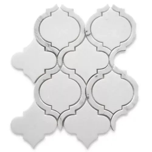 T89AXP Thassos White Marble Slab Modern Chinese Style Calcite Waterjet Tile Baroque Lantern Design for Villa Brushed Honed