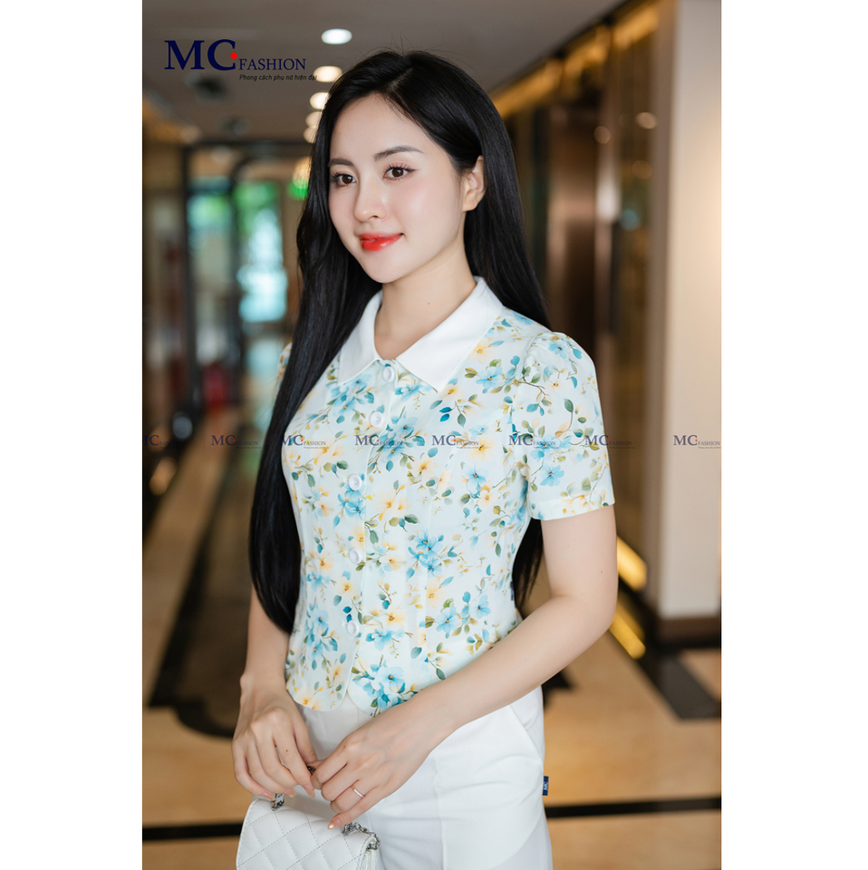 TA1520 Women office fashion bassic shirt high fashion standard form good shape retention short sleeve small flower decor