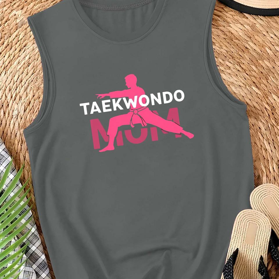 TAEKWONDO MOM with Silhouette Women's Casual Knitted tank Tops Front logo